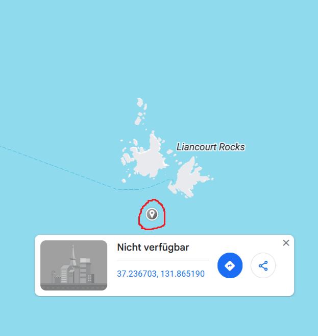 (24.9월 독일어 구글 지도에서는 Dokdo라고 표기됨)