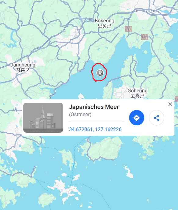 독일어 구글 지도에서는 일본해/동해로 표시되지요.