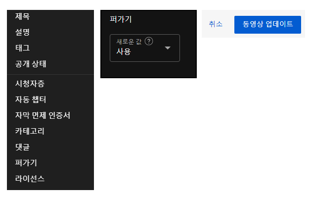 (3) (퍼가기 > 사용 > 동영상 업데이트) 차례로 클릭