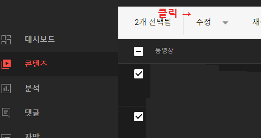 (2) 원하는 동영상 선택 후 "수정" 클릭