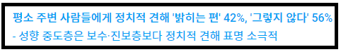 그러나 그들은 정치적 성향을 잘 드러내지 않는다.