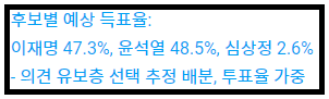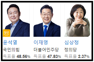 (2) 아래는 실제 대선 결과다.