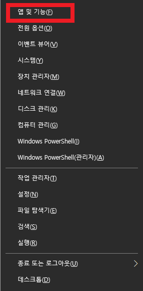 (1) 윈도우키를 누른 상태에서 X 누른다.