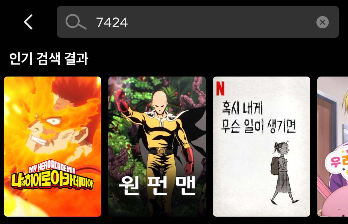 넷플릭스 애니메이션 시크릿 코드는 7424임