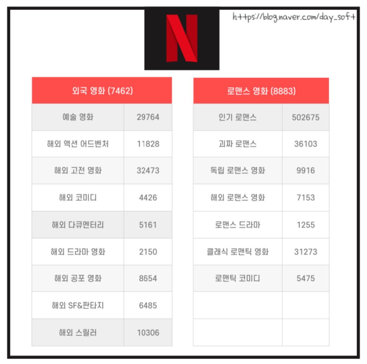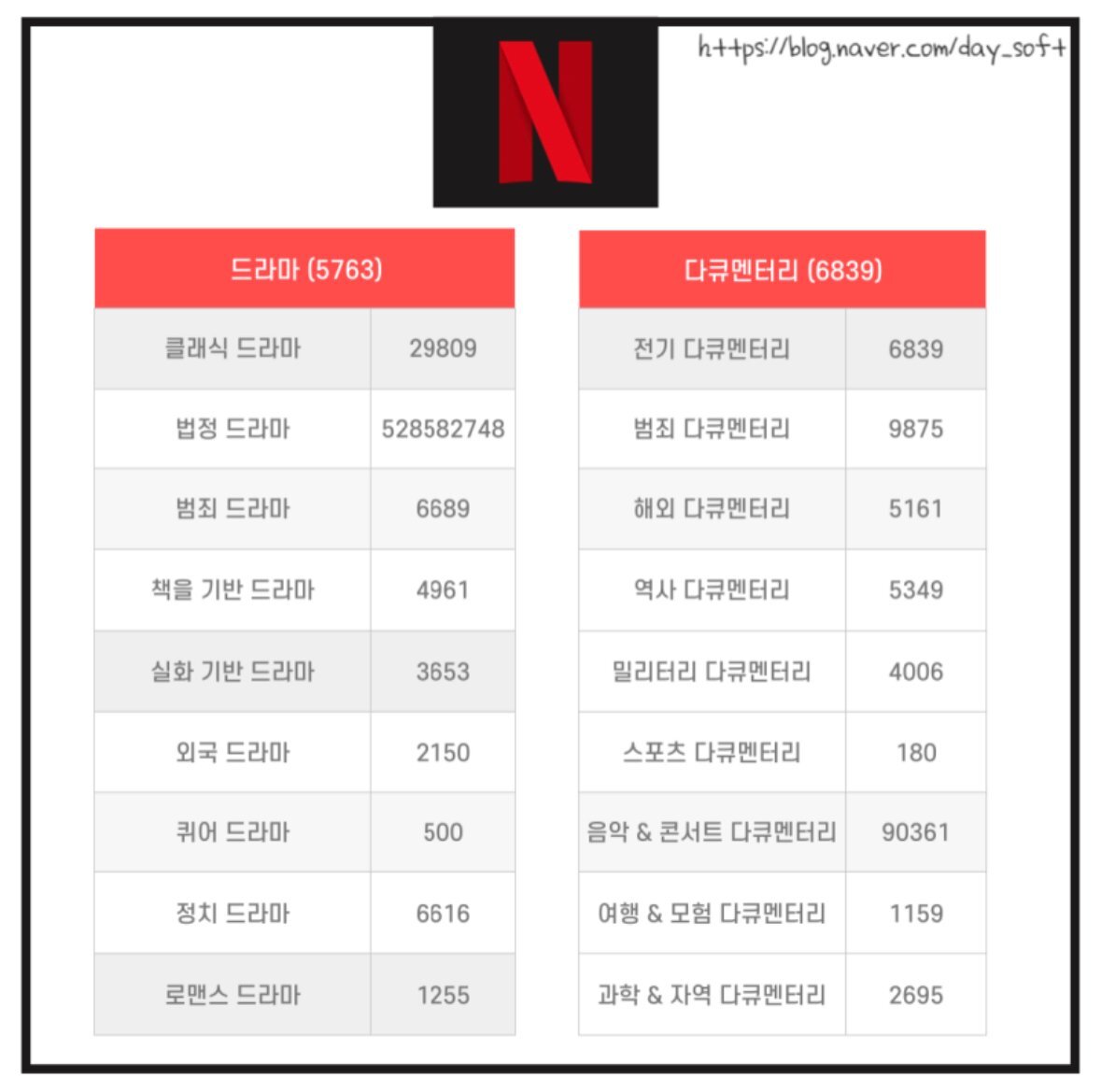 카테고리에 들어가면 어떤 장르인지만 써 놨기 때문에