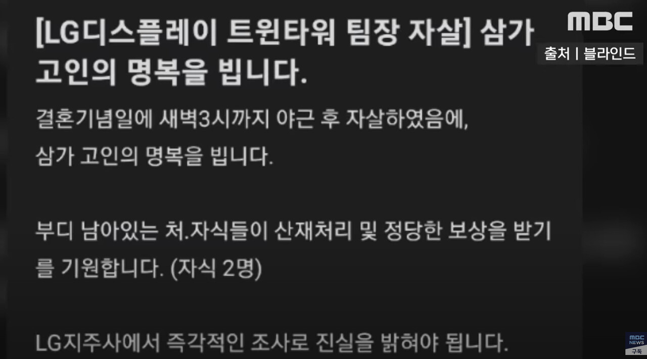 할 수 밖에 없게 만들었던 회사는 과연 이 분의 죽음을