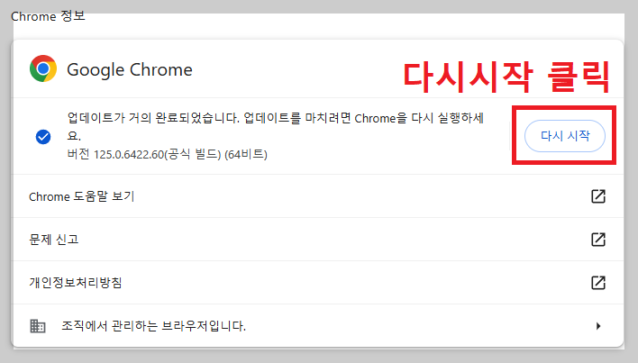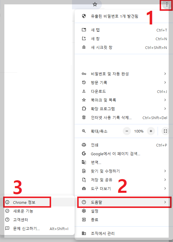 1. 크롬에서 [도움말] - [Chrome 정보] 선택