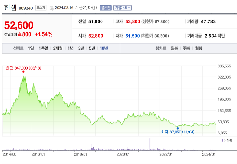 그 업계 중 압도적인 1등인 한샘을 골라서