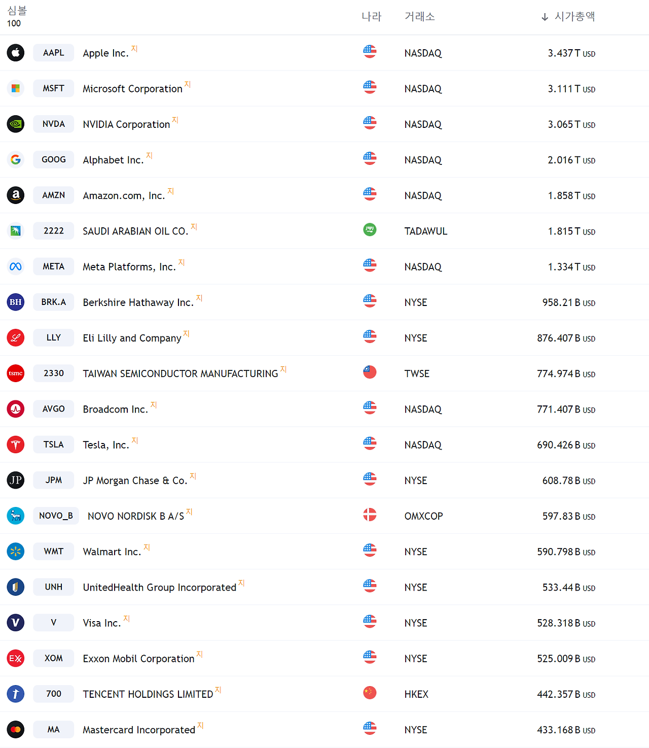 그자리에 TSMC가 대신 올라와 있습니다.